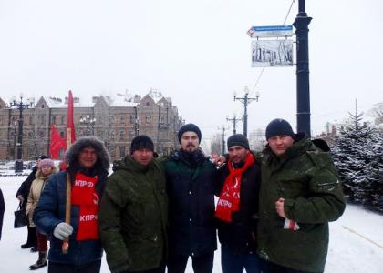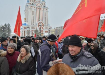 В субботу, 28 ноября, на Комсомольской площади Хабаровска состоялся митинг за отставку краевого руководства, организованный Хабаровским краевым комитетом КПРФ. Мероприятие проводилось в рамках кампании за отставку губернатора и правительства, а также роспуск Законодательной Думы Хабаровского края.