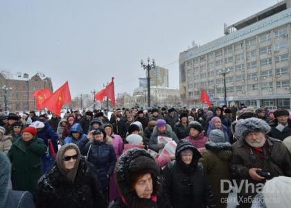 Несмотря на снегопад и проблемы с транспортом, в митинге приняли участие более 500 человек. В ходе митинга с трибуны выступили участники разных возрастов и профессий, среди которых была даже 89-летняя труженица тыла, которая пришла выразить свой протест против отмены социальных льгот и снижения уровня жизни. Присутствовала на митинге и молодежь - члены КПРФ и ЛКСМ РФ, просто неравнодушные молодые люди. Перед митингом и во время его проведения осуществлялся сбор подписей за отставку краевых властей и распространялся свежий номер краевой партийной газеты «Народный авангард Хабаровского края», привезенный прямо из типографии.