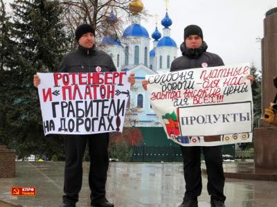 В субботу, 5 декабря, в городе Тамбове у памятника Зои Космодемьянской состоялась региональная акция протеста против введения системы взимания платы с большегрузов «Платон», а также губительной социально-экономической политики властей. Митинг был организован Тамбовским обкомом КПРФ и перевозчиками. В нём приняли участие более 500 человек, прибыли представители Мичуринска, Моршанска, Котовска, Рассказово, а также Инжавинского, Мичуринского и других районов области.