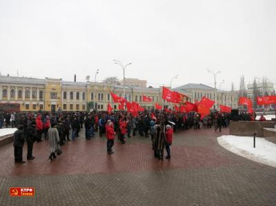 Митинг открыл первый секретарь Тамбовского ОК КПРФ А.И. Жидков. Андрей Игоревич призвал участников акции к борьбе не только за экономические требования, но и зреть в корень происходящих процессов. «Инициатором принятия данной системы в интересах монополистов и отдельных олигархов является руководство страны, и ответственность за это несёт как правительство, так и президент. Сейчас власти пытаются сгладить протест - понизили размер оплаты и штрафов, идут разговоры о тестовом введении системы, но буржуазной сути это не меняет, поэтому обольщаться мы не должны. Кроме того, вопрос социальной справедливости сводится не только к отмене системы «Платон». Мы являемся заложниками капиталистической системы, и её ущербность для простых трудяг прослеживается во всех сферах жизни общества», - отметил А.И. Жидков.