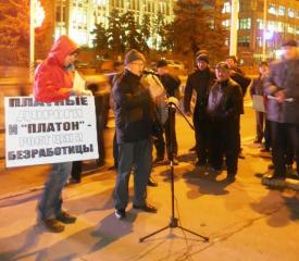 Открыл митинг первый секретарь Саратовского горкома КПРФ А.Ю. Анидалов. В своём выступлении он отметил, что грабительская система поборов "Платон" – незаконный "оброк", назначенный грузоперевозчикам правительством Медведева. Ведь для введения нового налога недостаточно распоряжения Правительства РФ, а требуется принятие специального федерального закона. Также незаконны, по мнению Александра Анидалова и штрафы за неуплату этих поборов.