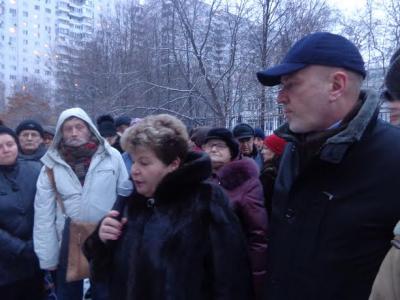 В субботу, 12 декабря 2015 года (символично, что в день Конституции "новой" России), прошел очередной митинг протеста жителей против строительства коммерческого "небоскреба" по адресу: ул. Маршала Захарова, вл.7. Акция прошла при поддержке КПРФ. Ведущим митинга был депутат трех созывов МГД, секретарь МГК КПРФ Евгений Борисович Балашов.