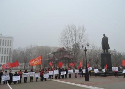 время пикета шел сбор подписей в поддержку ФЗ «О детях войны», раздавались листовки и газета «Коммунист Калмыкии».