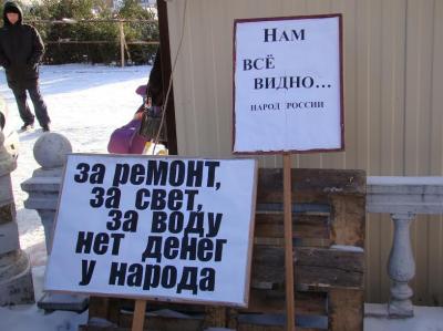 беспредел!», «За ремонт, за свет, за воду нет денег у народа!».