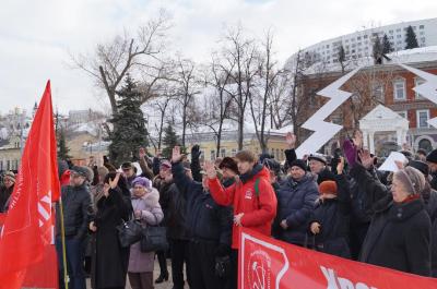 5 февраля Нижегородское отделение КПРФ провело митинг против антинародной политики властей, обнищания населения, против отмены индексации пенсий и социальных выплат, против увеличения пенсионного возраста, налогов и платы за ЖКХ.
