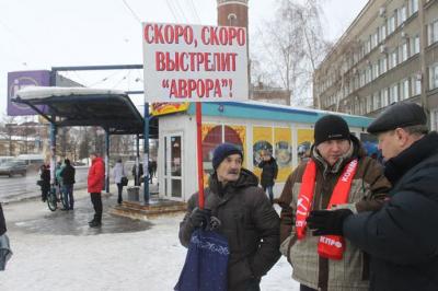 Серия пикетов стартовала с площадки перед проходной Телевизионного завода – как раз в то самое время, когда мимо шёл поток рабочих, закончивших свою смену. Деятельности в пролетарской среде омские коммунисты уделяют большое внимание.