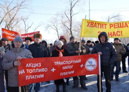 На митинг приехали водители-дальнобойщики из Кургана и Шадринска, пришли представители Тюменской областной организации «Дети войны», областных отделений партий «Рот-Фронт» и РКРП.