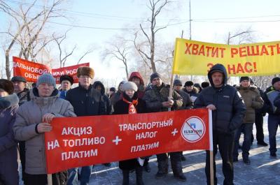 На митинг приехали водители-дальнобойщики из Кургана и Шадринска, пришли представители Тюменской областной организации «Дети войны», областных отделений партий «Рот-Фронт» и РКРП.