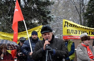 Также участники митинга потребовали прекращения необоснованного уголовного преследования секретаря Ростовского обкома КПРФ, депутата ГосДумы Владимира Бессонова.