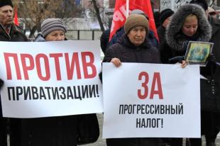 Обращаясь, к протестующим, секретарь обкома КПРФ, депутат Государственной Думы Владимир Симагин отметил, что «10 процентов населения страны захапали себе 90 процентов собственности».