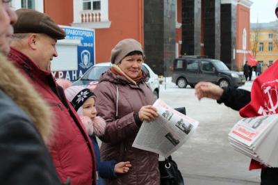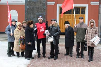 Коммунисты и «Дети войны» из Ленинского райкома распространяли агитационную продукцию у здания областной Думы. Участники акции раздавали листовки, газеты «Правда» и «За возрождение», календарики с партийной символикой, разъясняли прохожим настоящие причины нынешнего кризиса, организованного буржуазно-олигархической властью. Секретарь Ленинского райкома КПРФ О.В. Певунов отметил, что большинство людей понимают всю серьезность положения и необходимость перемен, поэтому и листовки разбирают активно, и высказываются в поддержку Компартии, некоторые изъявили желание вступить в её ряды. Здесь же работала выездная приемная депутата городской Думы, первого секретаря Ленинского райкома КПРФ А.С. Померанцева, а также передвижной пункт «красной» радиостанции "Местное радио".