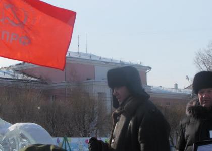 Несмотря на мороз, сотни комсомольчан пришли на площадь Юности 13 февраля, чтобы сказать «Нет!» антисоциальной политике, которую проводят краевые и городские власти в отношении большинства жителей города. Возмущенные решением Правительства и Законодательной Думы края об отмене льготного проезда для ветеранов, инвалидов и многодетных семей в общественном транспорте, а также ростом тарифов в сфере ЖКХ, жители Комсомольска поддержали инициативу краевого комитета КПРФ об отставке губернатора и Законодательной Думы края, активно ставили свои подписи в подписных листах.