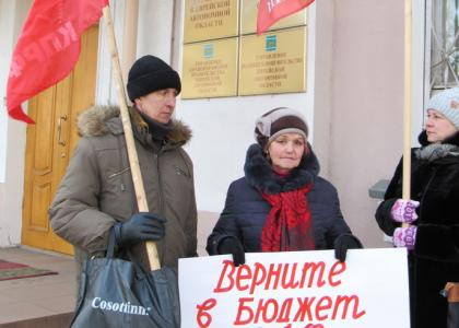 Оснастить медицинские учреждения Еврейской автономной области современным медицинским оборудованием, восстановить государственные лаборатории, обеспечить выполнение конституционного права граждан на бесплатную медицинскую помощь — с такими лозунгами вышли сегодня к зданию управления здравоохранения правительства ЕАО коммунисты Биробиджана.