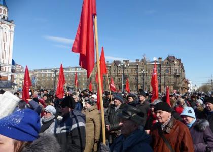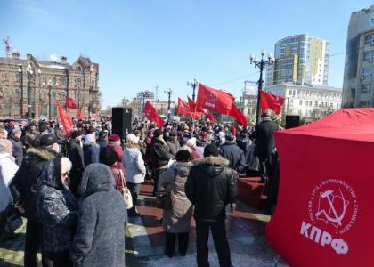 В Хабаровске состоялся массовый митинг, организованный краевым комитетом КПРФ. В мероприятии приняли участие около тысячи человек, которые заявили о своем недоверии краевой власти и выразили протест против проводимого социально-экономического курса.
