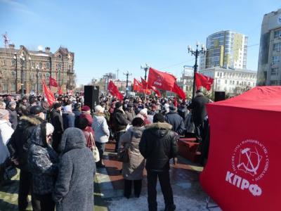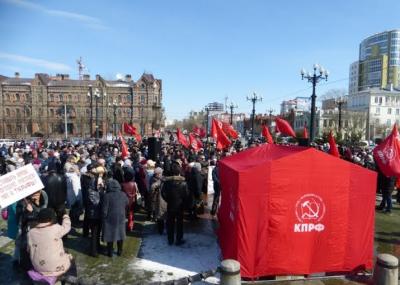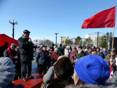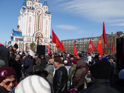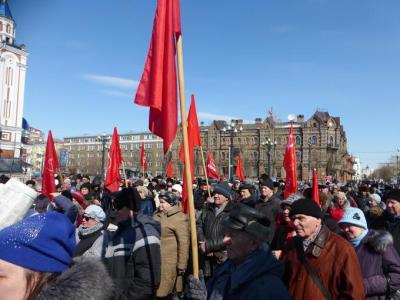 В Хабаровске состоялся массовый митинг, организованный краевым комитетом КПРФ. В мероприятии приняли участие около тысячи человек, которые заявили о своем недоверии краевой власти и выразили протест против проводимого социально-экономического курса.