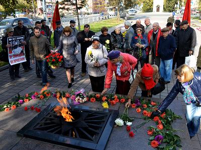 Коммунисты Барнаула 3 октября провели акцию памяти в честь погибших в Москве в октябре 1993 года защитников Дома Советов.