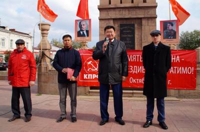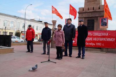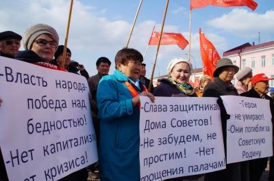 7 октября площадь Революции г.Улан-Удэ была в кумачовых стягах. Коммунисты Бурятии провели митинг, посвященный октябрьским событиям 1993 года, когда произошел расстрел Белого дома. Также на митинге была актуальна тема недавно прошедших выборов в Госдуму.