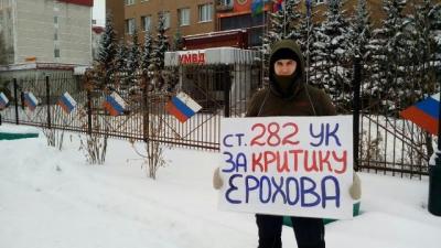 Активист общественной организации «Совесть», поддерживающей КПРФ, Сергей Ермаков встал одиночным пикетом у входа в здание Думы, протестуя против откровенного отстаивания властями интересов олигархов-застройщиков.