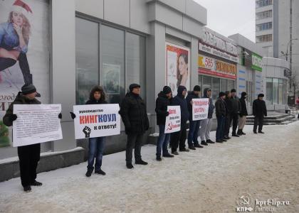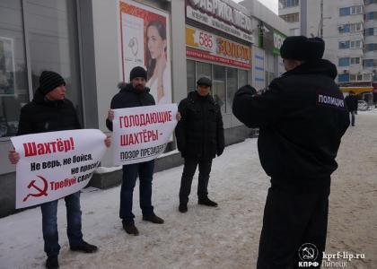 Рабочие и коммунисты областной организации КПРФ держали в руках плакаты с надписями "Руководство КИНГКОУЛ - к ответу", "Голодающие шахтеры - позор Президенту", "Шахтёр! Не верь, не бойся, не проси. Требуй своего".