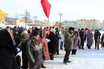 4 марта с.г. в Магадане на Театральной площади состоялся митинг протеста, организованный областным отделением КПРФ. Поводом для организации и проведения подобного митинга стали многочисленные обращения в нашу партию горожан, пострадавших от беспрецедентно наглой политики «Обслуживающей организации города Магадана». Самым возмутительным фактом для горожан стало присвоение мэрией звания «Человек года» ее руководителю С. Зюбину, который на протяжении нескольких лет занимается, по сути, рейдерскими захватами городских Управляющих компаний и ТСЖ на основе «липовых» документов. В этой «деятельности» его не останавливают ни уголовные дела, ни многочисленные судебные тяжбы.