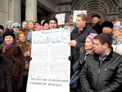 4 марта в Екатеринбурге на Площади Труда состоялся организованный свердловским областным Комитетом КПРФ митинг против повышения стоимости проезда на общественном транспорте и отмене льгот для наименее защищенных категорий граждан.