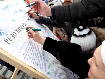 В конце митинга бала зачитана Резолюция, адресованная городским и областным властям, содержащая серию требований: