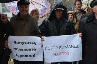 Протестующие скандировали лозунги «Заксобрание в отставку!», «Требуем губернатора севастопольца!», держали в руках плакаты «Депутаты, услышьте горожан!», «Позор команде Чалого!».