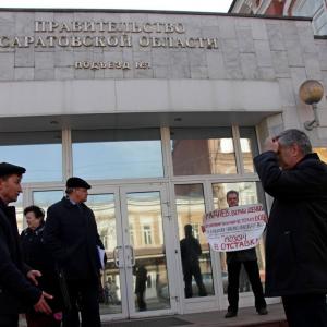 Сегодня, 16 марта, у входа в здание Правительства Саратовской области состоялся одиночный пикет саратовского коммуниста Сергея Жедрина.