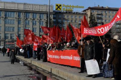 красными флагами собрались на площади Ленина по призыву Новосибирского