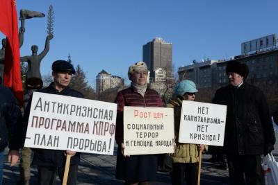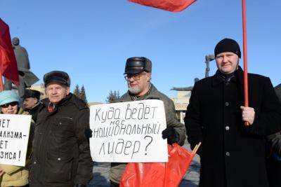 Более 100 человек собралось на площади Ленина, чтобы выступить против роста безработицы, цен на товары первой необходимости и неолиберального социально-экономического курса российского правительства.