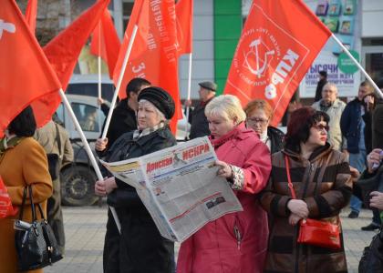 17 марта, в день годовщины Всесоюзного референдума о сохранении Союза Советский Социалистических Республик, коммунисты и комсомольцы донской столицы, обманутые дольщики, жители бывших дачных товариществ и другие активные неравнодушные ростовчане собрались возле памятника В.И. Ленину в центре города, чтобы выразить решительный протест социально-экономической политике Путина-Медведева.
