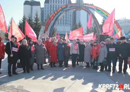 Митинг открыла первый секретарь Тюменского обкома КПРФ Тамара Николаевна Казанцева. В своем выступлении она охватила главные проблемы населения Тюменской области. Уже 2,5 месяца коммунисты не дают повысить плату за проезд в общественном транспорте, проведено три пикета и два митинга. На мартовском заседании областной Думы принято новое решение об увеличении тарифов на проезд на 5,1%. Только фракция КПРФ не поддержала это решение, «липовая оппозиция» в лице ЛДПР и СР проголосовала в угоду власти.