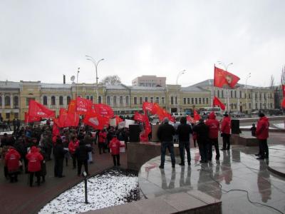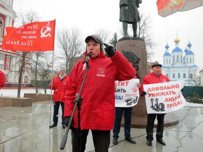 В понедельник 27 марта зима вновь обрушилась на Тамбовщину промозглым ветром и мокрым снегом. Но, несмотря на непогоду, запланированный силами КПРФ и грузоперевозчиков области митинг состоялся.