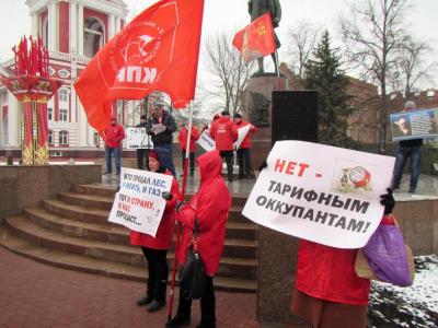 услуги ЖКХ. В руках участников акции плакаты: «Хватит грабить народ!», «Власть