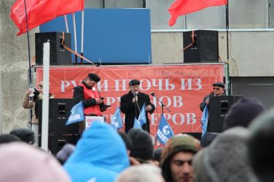 На митинге у Дворца спорта авиационного завода на Безымянке, граждане потребовали от региональных властей отменить пакет антисоциальных решений, принятых по инициативе Губернатора с начала этого года (отмена льгот по ЖКХ, транспортным поездкам, замена ЕДВ на «компенсации»).