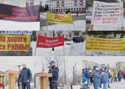 В 11.00 «Объединение перевозчиков Казани» провело митинг против системы взимания платы с большегрузов «Платон» за проезд по федеральным трассам. Акция прошла в микрорайоне Дербышки в сквере у Дворца культуры им. Саид-Галиева.