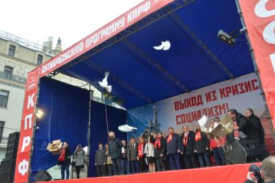 Вход протестующих на площадь сопровождался исполнением авторских песен. Участники митинга поддержали заявление Г.А.Зюганова в связи с агрессивными действиями США против Сирии.