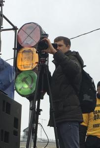 На сцене был установлен "протестный светофор", который включал на изображении премьер-министра Метведева красный сигнал "стоп". На изображении гр.Навального - жёлтый сигнал, "Внимание, опасность", а на зеленом - открывал дорогу программе КПРФ.