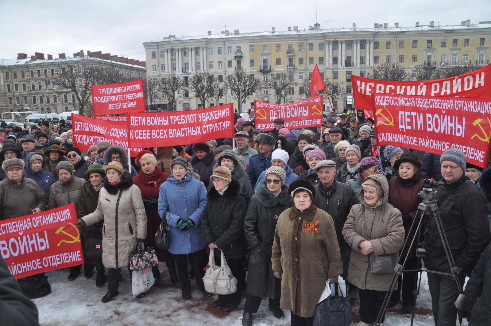 14 апреля 2017 года на площади Ленина в городе на Неве состоялся митинг протеста против роста цен, тарифов, коррупции, в поддержку закона «О детях войны», организованный Санкт-Петербургским отделением организации «Дети войны» при поддержке Санкт-Петербургского городского отделения КПРФ.