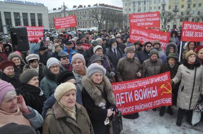 Митинг, ведущим которого выступил член Президиума городского отделения «Детей войны» А.Р. Контарев, открылся выступлением члена Центрального Совета «Детей войны», члена Президиума ЦК КПРФ С.М. Сокола. Возмущенные фактами игнорирования правительством нужд и чаяний простых граждан и махинациями при индексации пенсий, которые привел С.М. Сокол, участники митинга долго скандировали «Позор!».