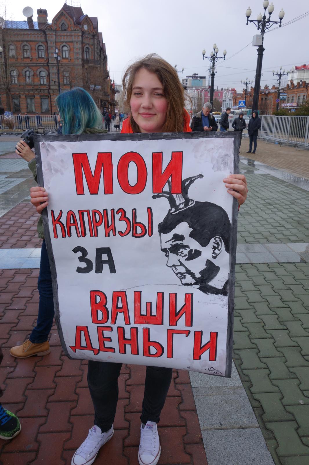 16 апреля в Хабаровске состоялся митинг, организованный Хабаровским краевым отделением КПРФ. Несмотря на непогоду, жители города пришли поддержать требования отставки правительства России и заявить о необходимости смены социально-экономического курса. Протестующие потребовали тщательного расследования информации о коррупционной деятельности Д.А. Медведева и других членов правительства России с последующим проведением открытого судебного процесса в случае ее подтверждения. Митингующие дружно скандировали «Димон, выйди вон!».