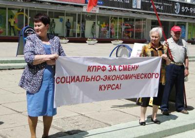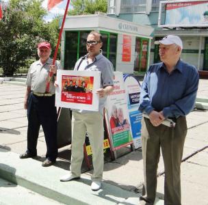 Входе акции протеста коммунисты призывали вступать в ряды партии и раздавали прохожим спецвыпуск газеты «Правда».