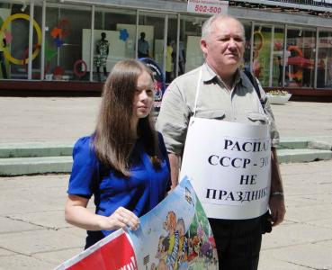 Первый секретарь Благовещенского горкома КПРФ Нина Тямкова вышла на акцию с увеличенной копией протокола Всесоюзного референдума о сохранении СССР, которой провели в 17 марта 1997 года. Тогда большинство граждан (77,85%) высказались за сохранение Советского Союза.