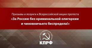 Публикуем призывы и лозунги к Всероссийской акции протеста «За Россию без криминальной олигархии и чиновничьего беспредела!» 15 июля 2017 года.