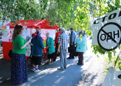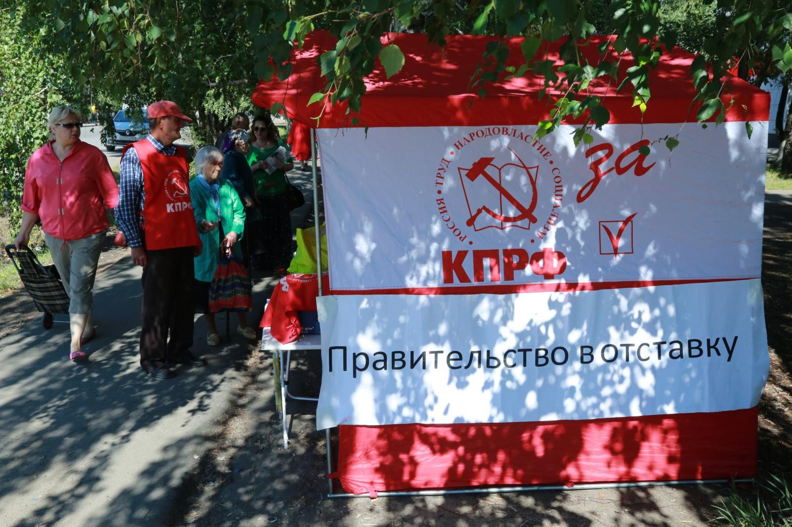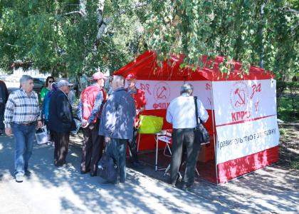 говорят местные жители, красная палатка КПРФ здесь, у администрации и неподалеку
