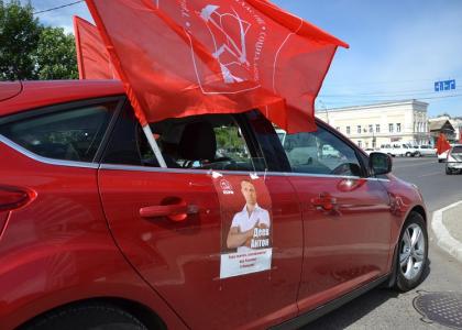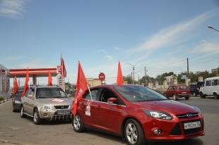 После митинга астраханские коммунисты и комсомольцы под красными знамёнами КПРФ, СССР и копией Замени Победы совершили автопробег по улицам Астрахани.