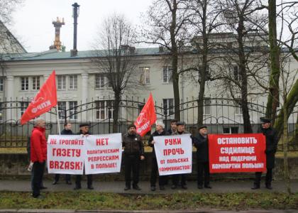 Во вторник, 28 ноября, калининградские коммунисты провели пикет у генконсульства Польши. Участники пикета держали в руках транспаранты: «Руки прочь от польских коммунистов!», «Нет политическим репрессиям в Польше!», «Остановить судилище над лидерами компартии Польши», «Не трогайте газету Brzask!». Калининградский пикет прошел в рамках международной акции: по всем миру, где есть польские посольства и консульства люди левых взглядов выходили выразить свой протест против того, что сейчас происходит в Польше.
