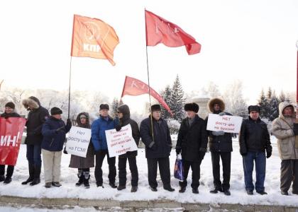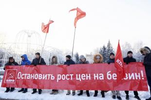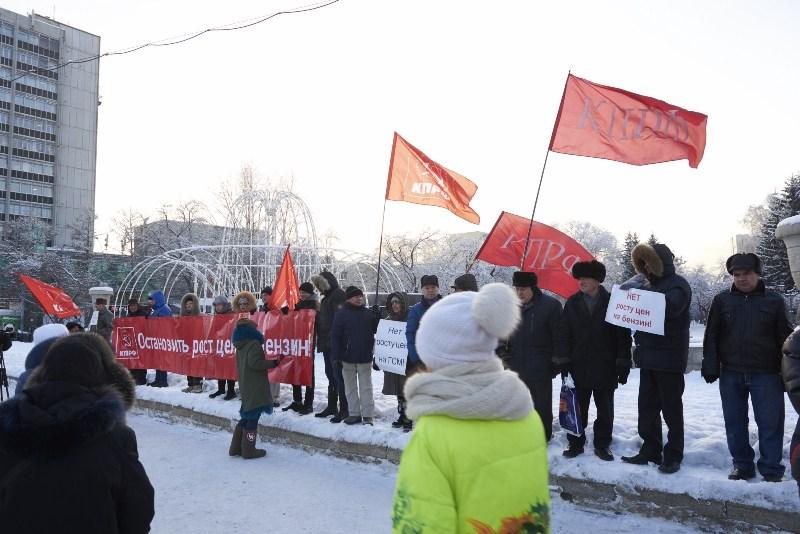 Новосибирский обком КПРФ присоединился к всероссийской акции протеста: коммунисты провели в Первомайском сквере пикет, посвященный необоснованному росту цен на бензин.