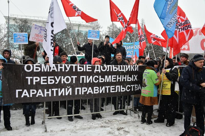 митинге также выступила группа представителей обманутых дольщиков. В своем