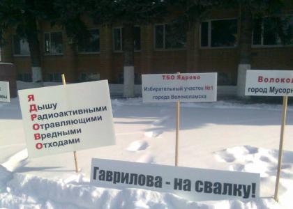 В подмосковном Волоколамске в субботу, 3 марта, более 5 тыс. человек вышли, на митинг против мусорного полигона ТБО "Ядрово", который расположен рядом с городом, на 112 км автодороги Волоколамское шоссе. Эксплуатацию полигона осуществляет ООО «Ядрово». Ежедневно на территорию полигона, на разгрузку приезжают сотни большегрузных машин с прицепами с различными видами мусора. Местные жители называют свалку «Ядрово» «мини-Чернобыль».